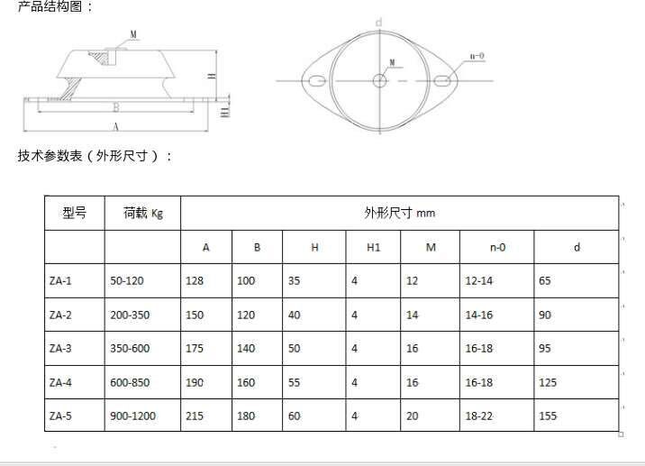 ZA型橡膠減振器是由上下殼體和橡膠減振層構成,適用於各類1500轉/分以上船用、陸用、航空用機械設備的振動、衝擊隔離。其在額定荷載下固有頻率為10Hz。結構簡單,安裝更新方便,使用安全可靠。安裝方式多種多樣,適用於平置、側置及側掛等多種安裝形式。橫向剛度高於縱向剛度,平置時橫向穩定性更好些。